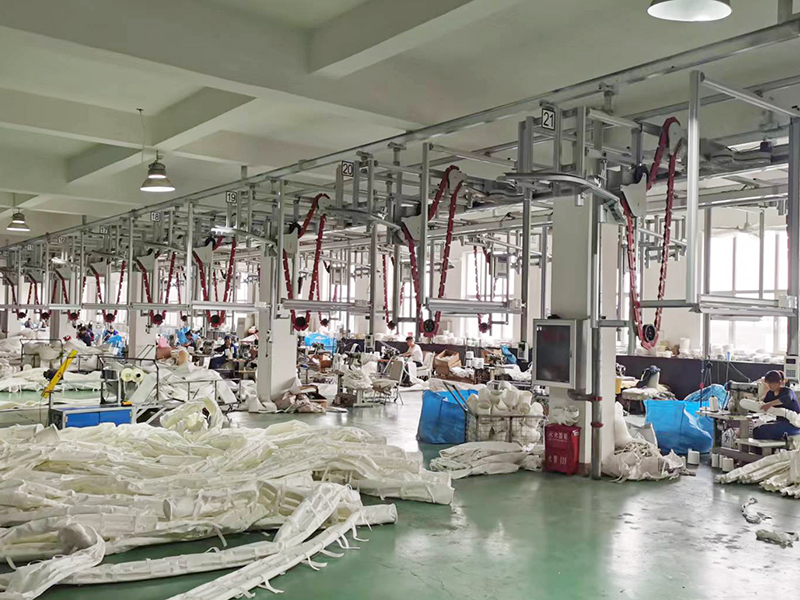 引進德國、英國兩條先進的濾料生產(chǎn)線,采用全自動進口縫合生產(chǎn)線和熱能粘合縫制濾袋,具有日產(chǎn)1萬平過濾材料、2000條各種濾袋生產(chǎn)能力